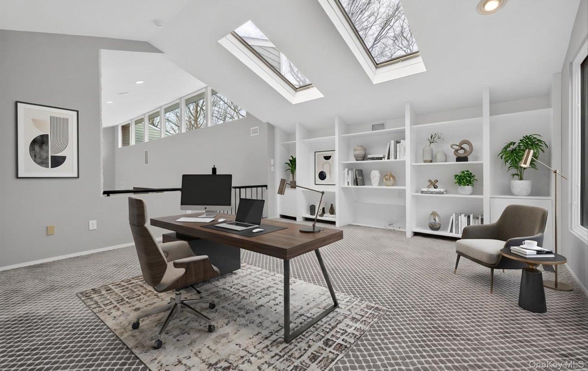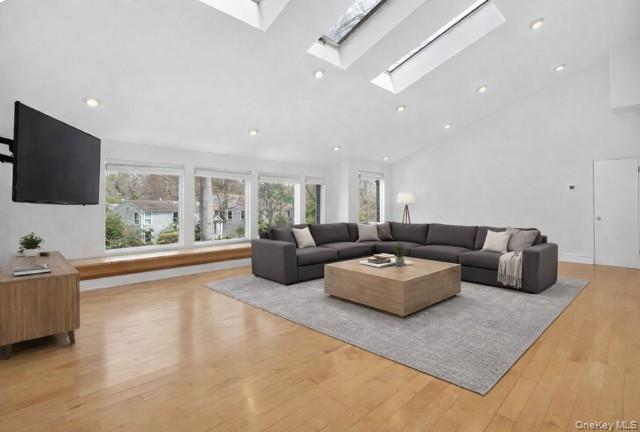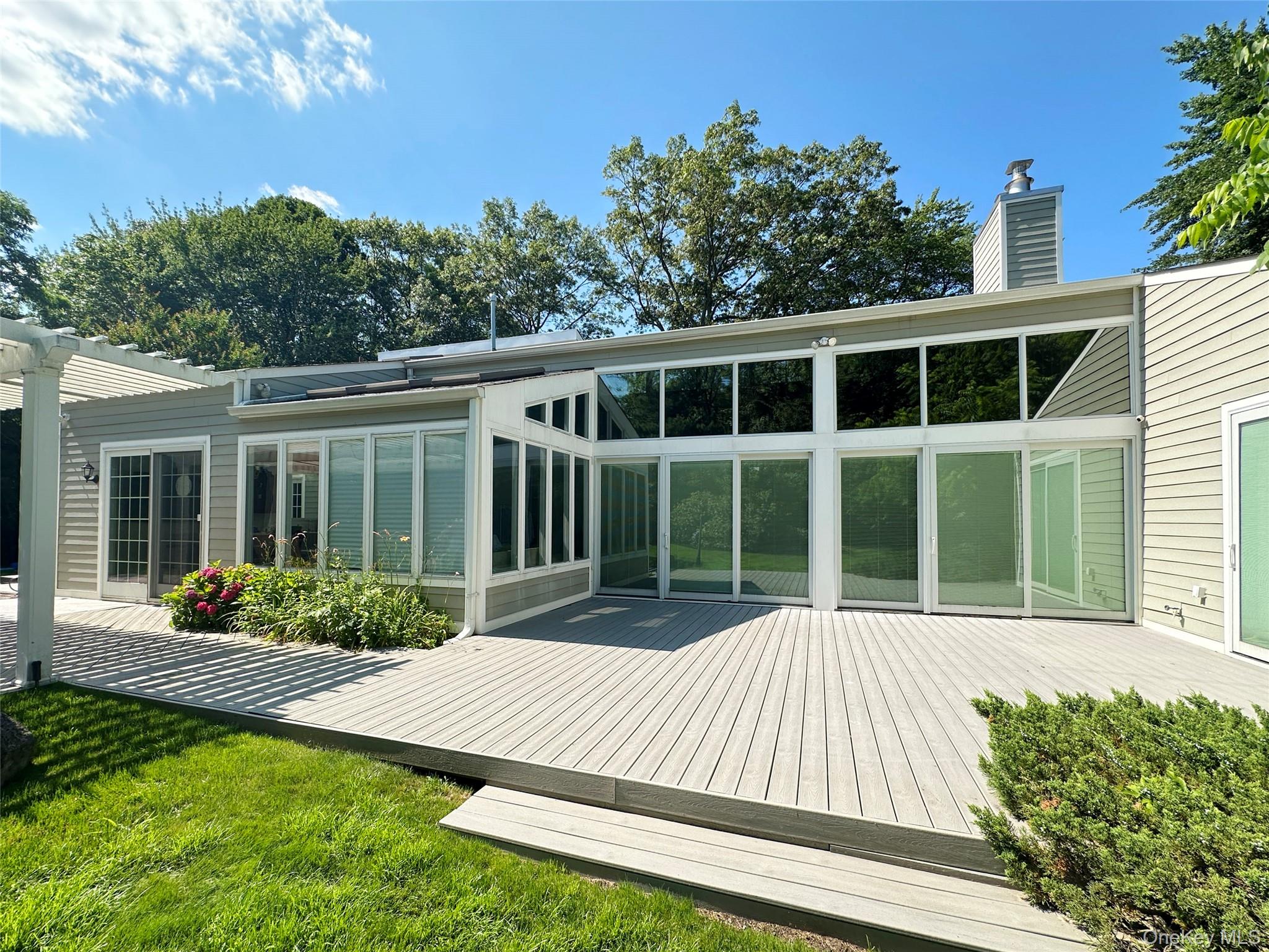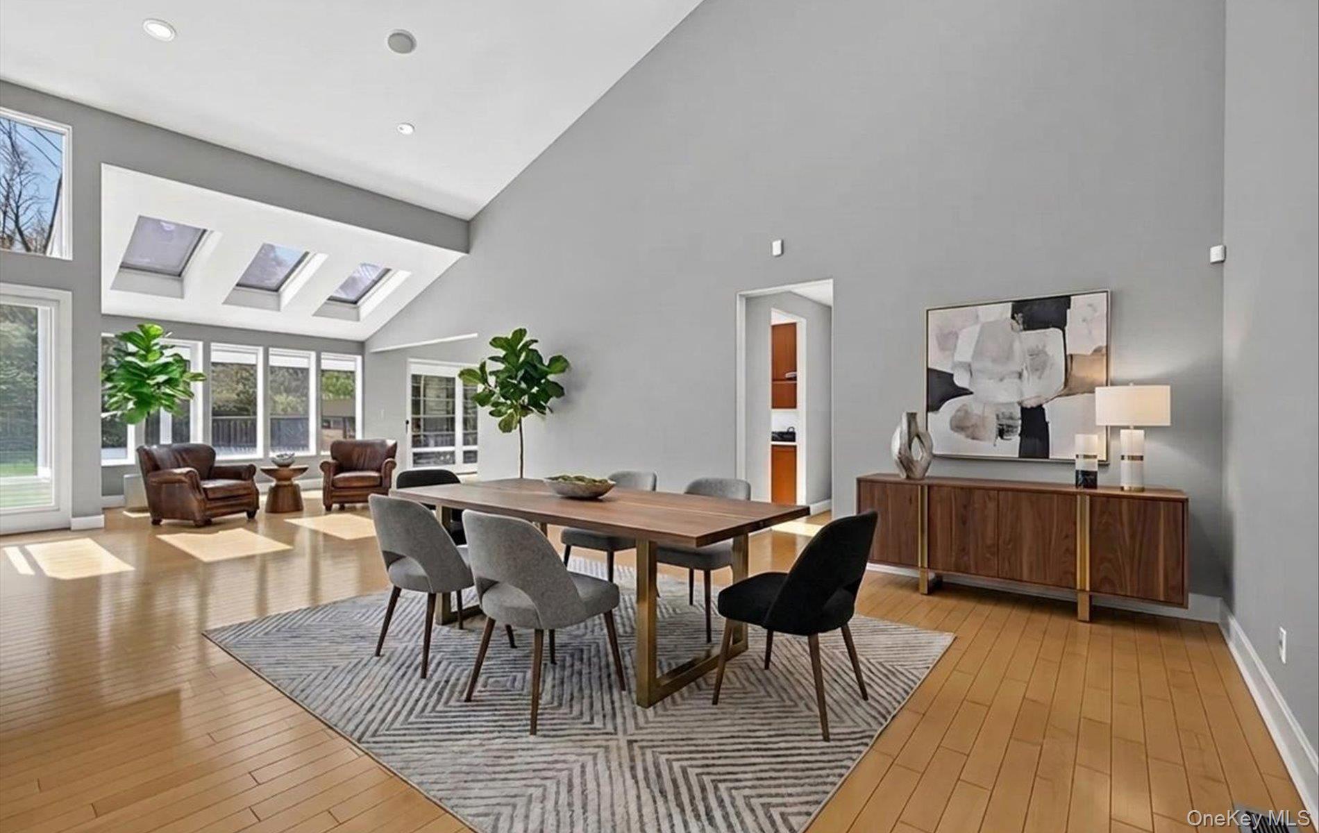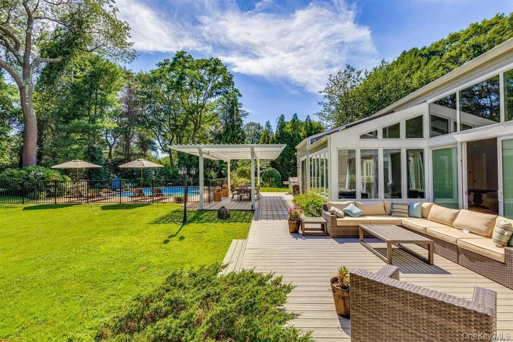 Sun-drenched and beautifully designed, this 6 bedroom, 4 full bath, 4670 square foot contemporary home offers an expansive open floor plan with soaring ceilings and an effortless flow for both everyday living and entertaining. Generous room sizes throughout are complemented by a striking living room featuring a stacked stone accent wall with a gas fireplace. The updated, state-of-the-art eat-in kitchen is equipped with stainless steel appliances and Silestone countertops, blending style and functionality. The spacious primary suite offers a true retreat, complete with a luxurious oversized bath. The second floor includes an additional flexible space ideal as a sixth bedroom or den. The fully finished basement provides exceptional bonus space with a playroom, theater, gym, and abundant storage. Set on a beautifully landscaped .73-acre property, the backyard features a newer in-ground gunite pool, perfect for outdoor enjoyment. Located within the private, gated community of Windemere, residents enjoy access to tennis and a scenic lake. All within the Syosset School District.